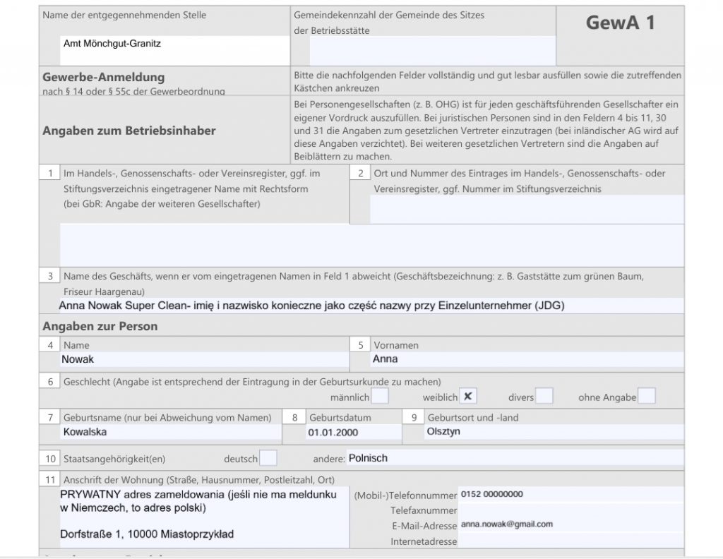 1. Gewerbeanmeldung – zgłoszenie działalności